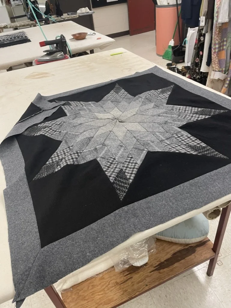 Made of scrap suiting fabric from a year of activity in the costume shop.